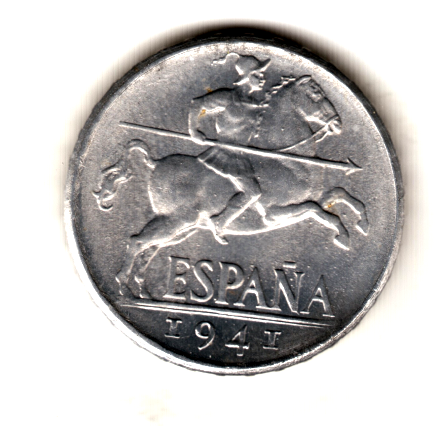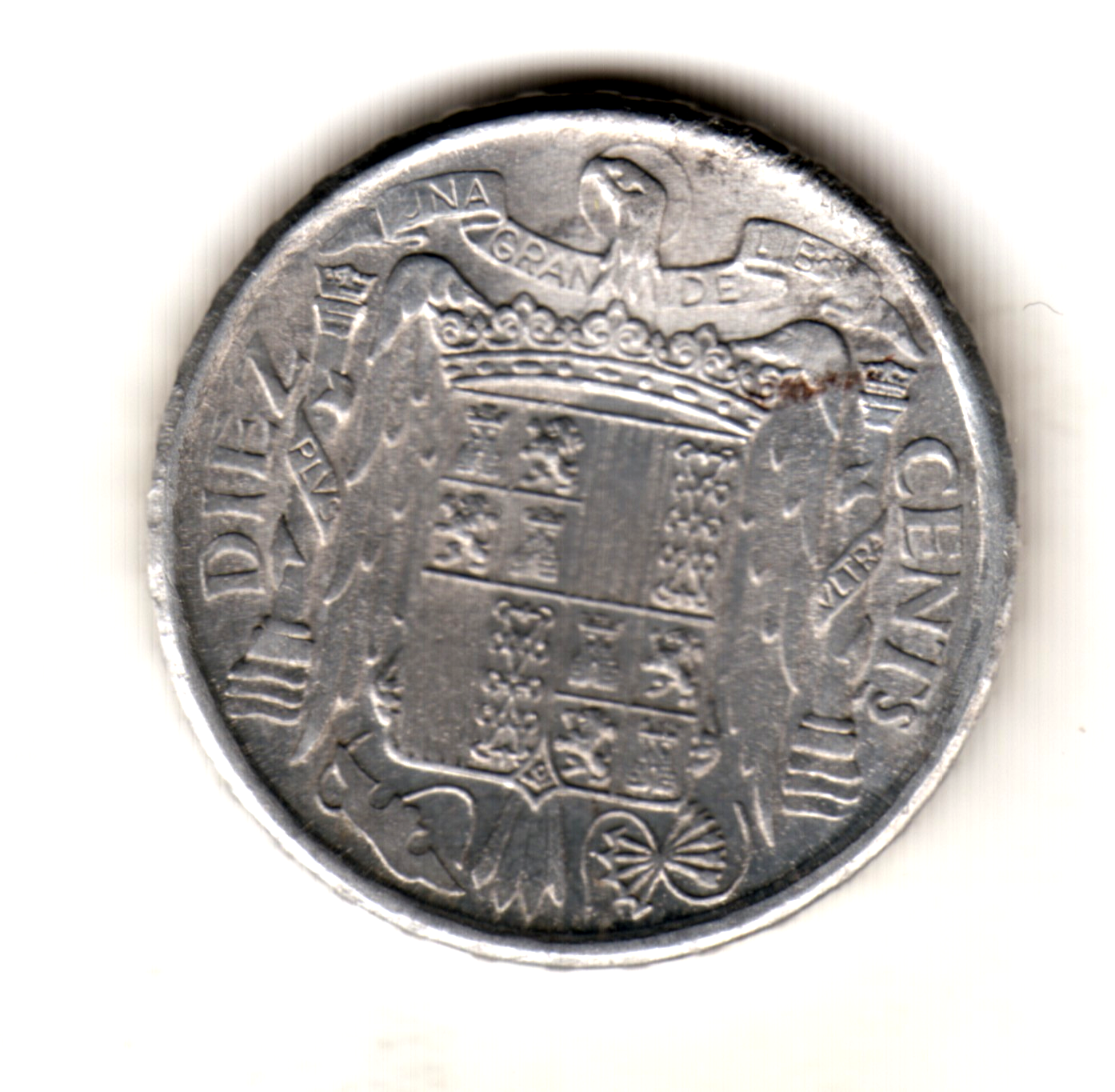 Preciosa moneda de 10 céntimos acuñada en aluminio por el Generalísimo Franco en el año 1941 VARIANTE / ERROR PLVS CON V en calidad sin circular