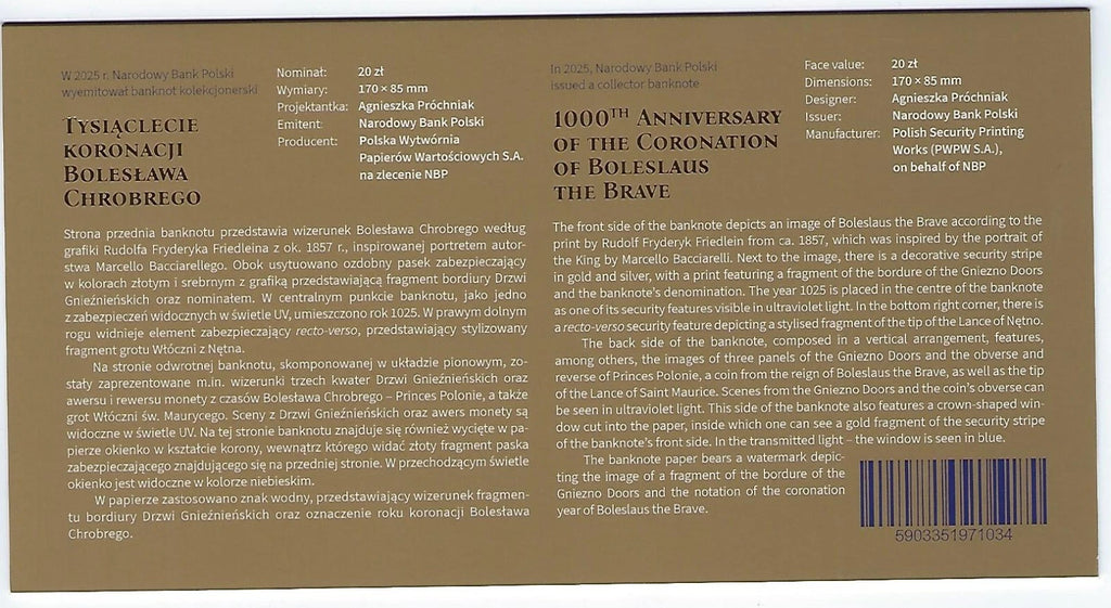 20 zl Polonia 1000 años de la coronación de Boleslao el Valiente 2025 está en espera y se enviará tan pronto como vuelva a estar en stock