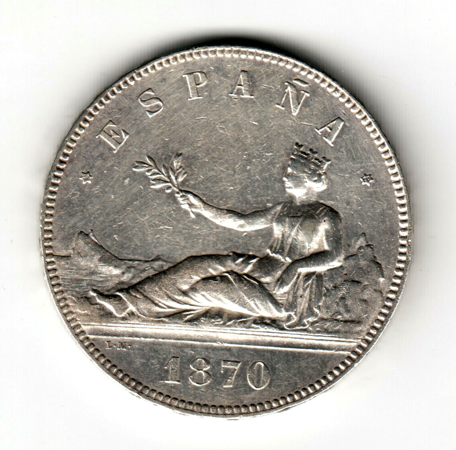 5 pesetas ESPAÑA 1870 SN.M. *18* *70* - Gobierno Provisional S/C- está en espera y se enviará tan pronto como vuelva a estar en stock