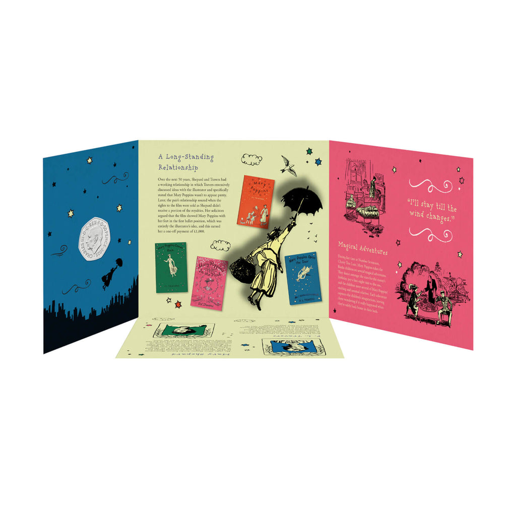 El reverso presenta un diseño basado en una ilustración original de Mary Shepherd que apareció por primera vez en los libros de Mary Poppins.