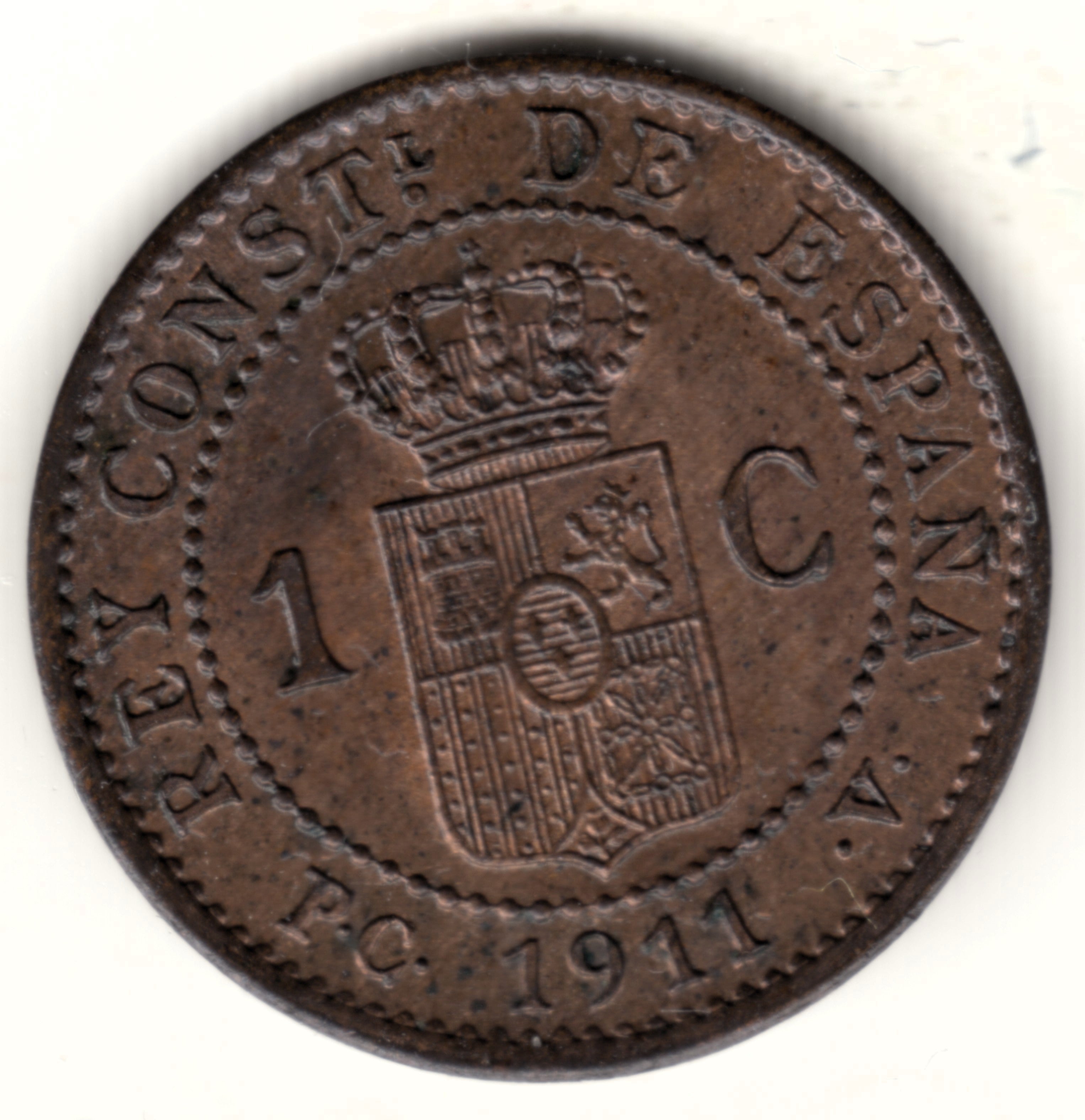 1 cent SPAIN 1911 - Alfonso XIII PC. V *1* S/C is backordered and will ship as soon as it is back in stock.