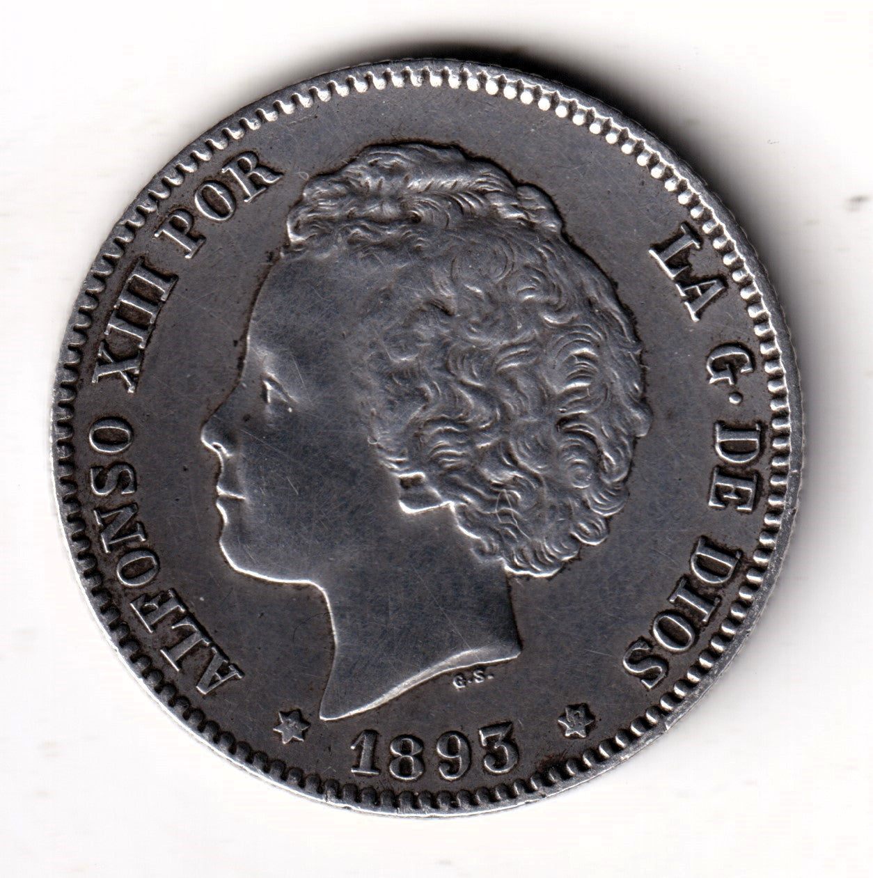 1 peseta SPAIN 1893 - Alfonso XIII *93* Loops is backordered and will ship as soon as it is back in stock.
