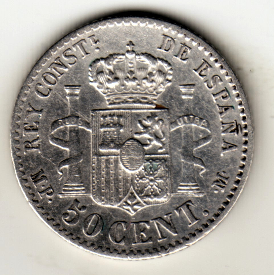 50 centimos SPAIN 1889 - Alfonso XIII *8* *9* is backordered and will ship as soon as it is back in stock.