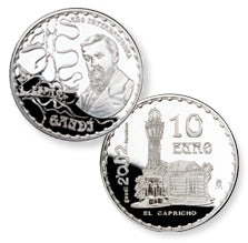 En el anverso se muestra el busto de Gaudí, y en el reverso El Capricho.