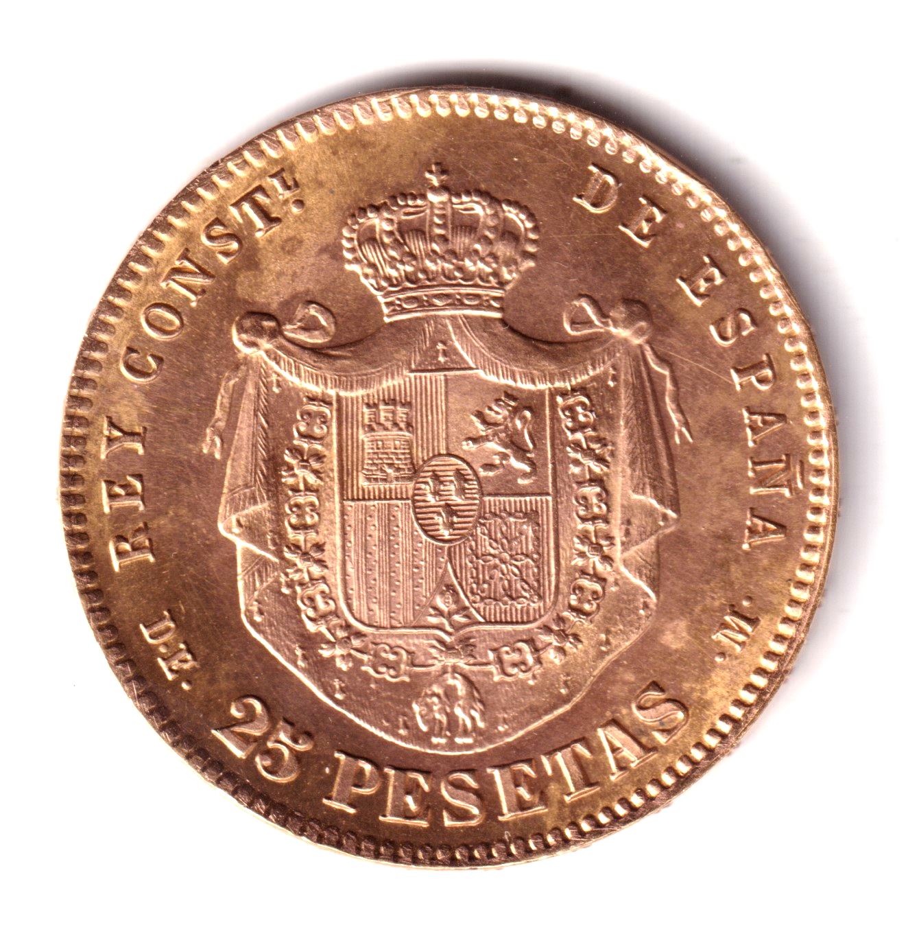 25 pesetas SPAIN 1883 - Alfonso XII *18* *83* MS.M is backordered and will ship as soon as it is back in stock.
