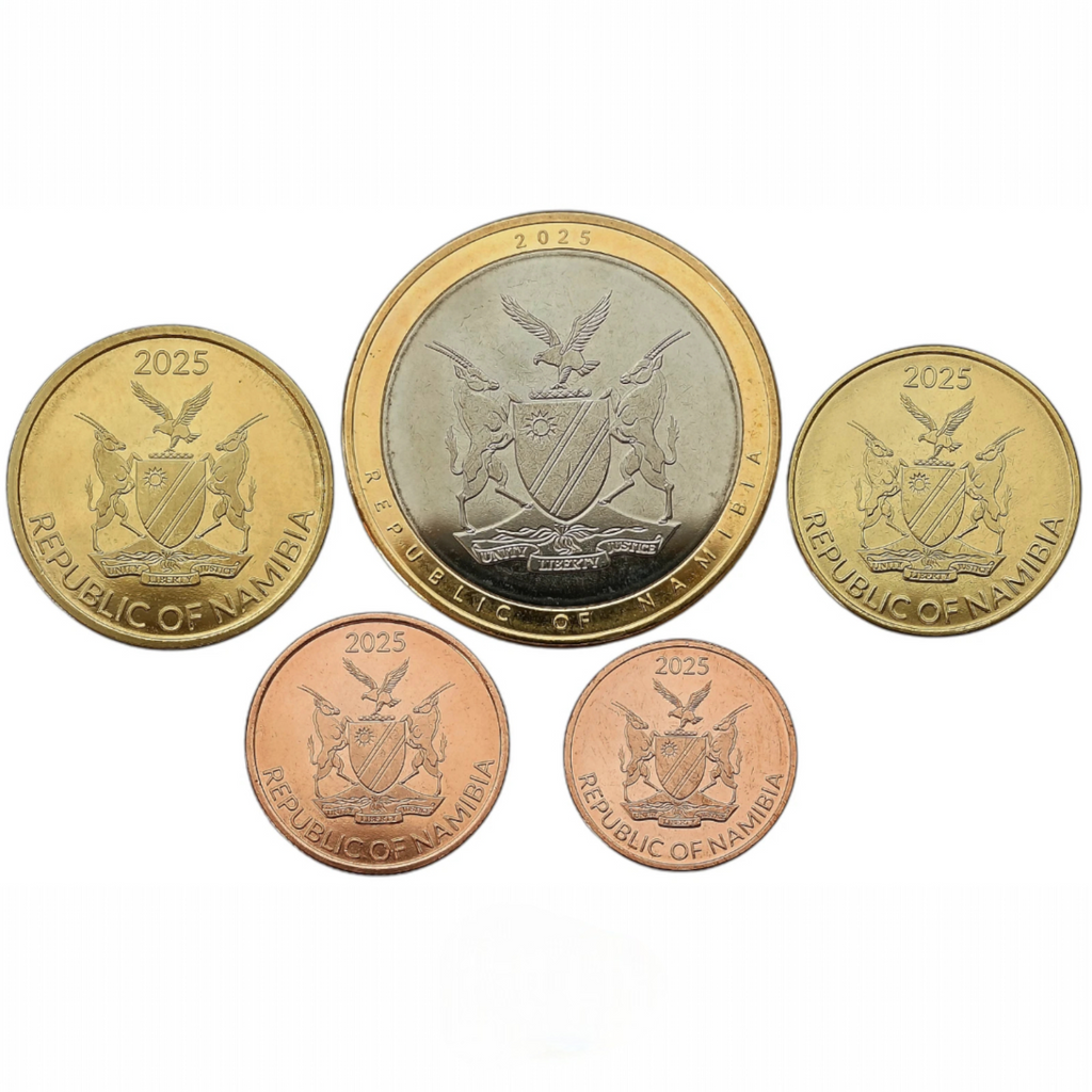 Set de Monedas de Namibia 2025 – Serie Completa (5 N$ a 10 Cents)